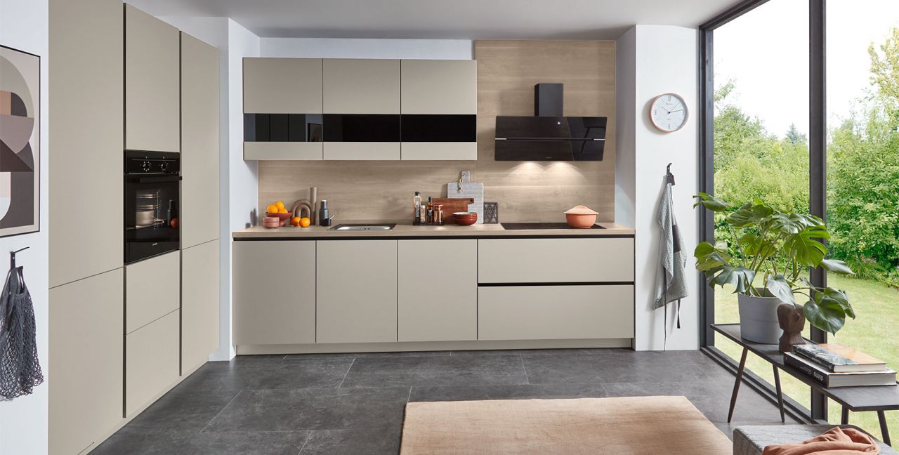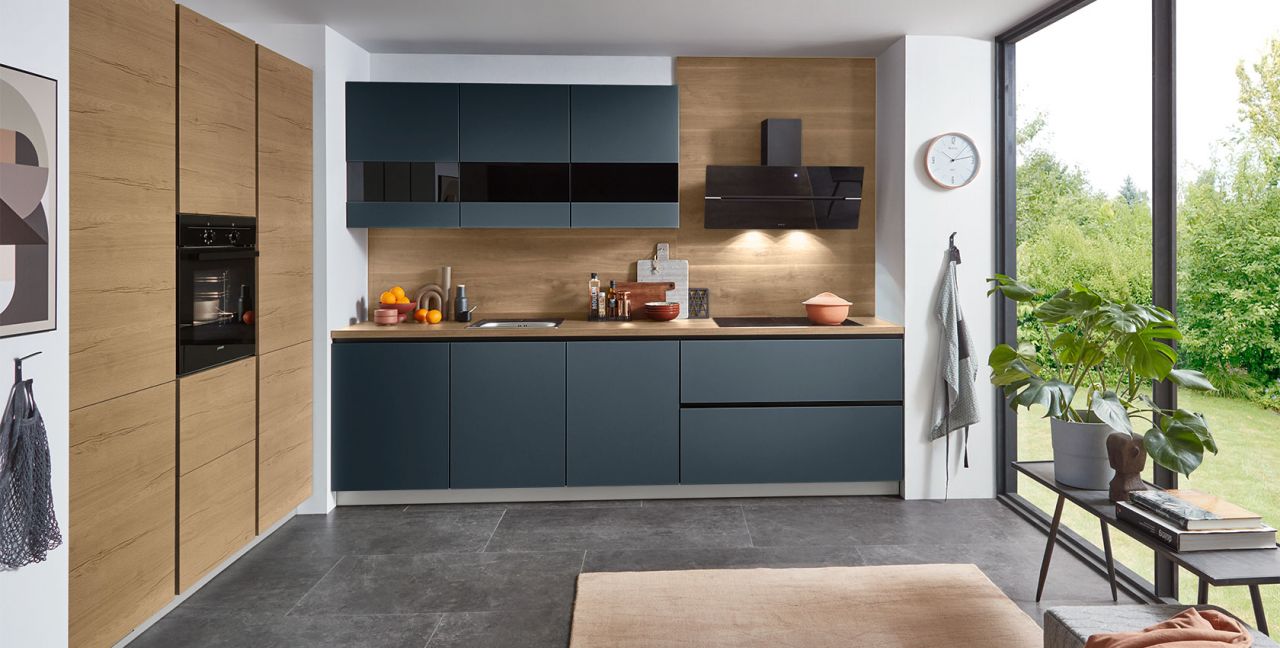 Inclusief inbouwoven zwart Junker JF1300061 Energieklasse A, keramische kookplaat Junker JR36DT54, designschouw RVS / zwartglas Elica WISE90BK Energieklasse B, koelkast Laurus LKG122E Energieklasse E, volledig geïntegreerde vaatwasmachine Laurus LSV60-4 Energieklasse E, RVS-inbouwspoelbak Rodi NewManaus, XL-kasten, onderkast met uittrekinterieur, wandkasten met segmentglasdeuren.